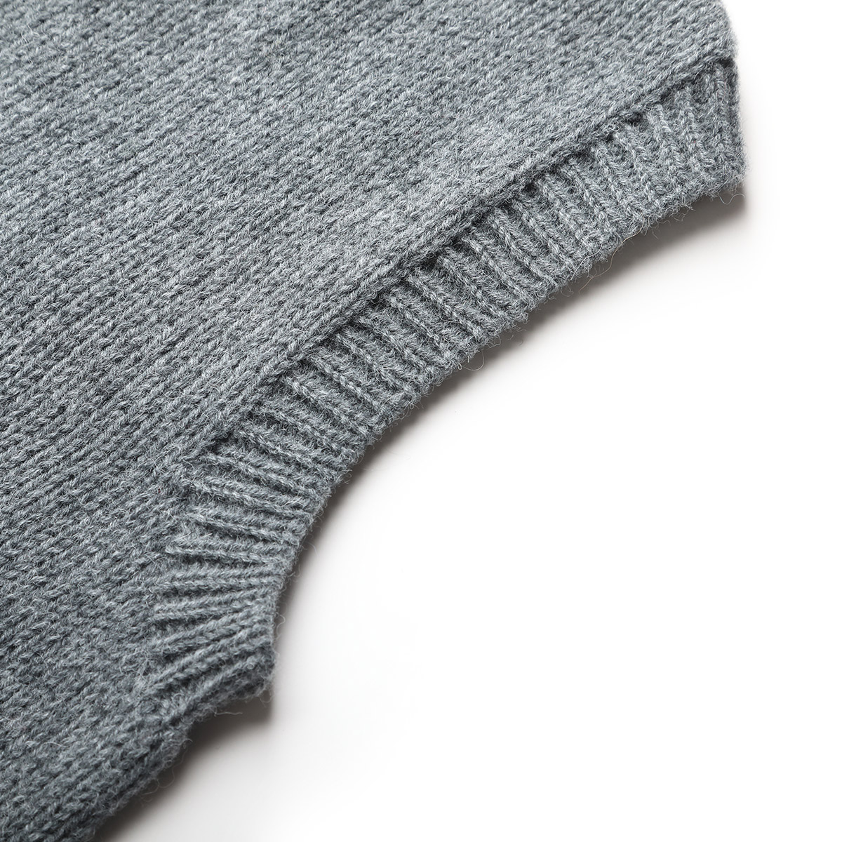 袖ぐりは、重ね着をしたときの快適さを決める部分でもあります。リブ使いで上品さは保ちつつ、やさしいラインで仕立てています。